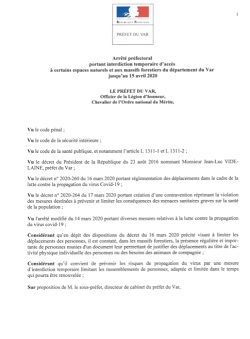 - L’accès aux salins, lacs, autres étendues d’eau et leurs rivages, berges de canaux et cours d’eau et aux massifs forestiers du département du Var.