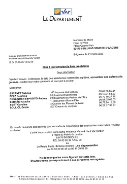 Des assistantes maternelles diplômées et professionnelles vous offrent leurs compétences. Le département nous transmet la dernière mise à jour. Elles sont six, à présent, installées sur notre commune. Audrey, Cécile, Delphine, Natacha, Sabrina et Caroline sont disponibles pour répondre à vos interrogations.