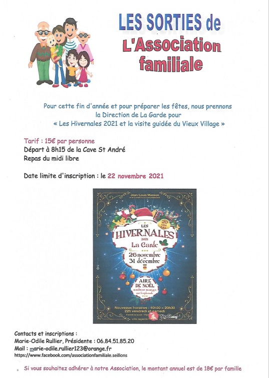L’association familiale vous invite à découvrir le vieux village de la Garde et découvrir les hivernales de la Garde qui ont 20 ans cette année. laissez-vous emporter par la magie des fêtes et à vos agendas, n’oubliez pas de vous inscrire!