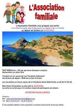 L’association familiale vous invite à une sortie direction La Ciotat pour une visite des Calanques!!!
