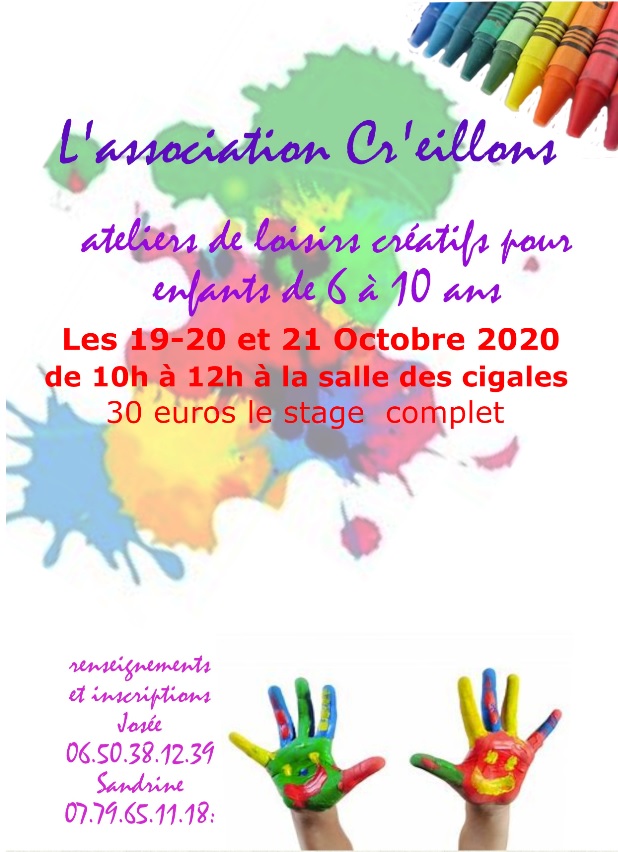 Comme à chaque vacances et même durant le confinement, l’association Cr’éillons vous invite à un atelier de loisirs créatifs.
