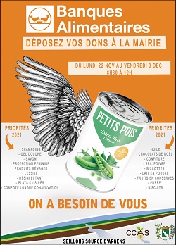 « Le CCAS adapte la Collecte Nationale de denrées alimentaires et vous propose de soutenir son action en apportant vos dons à l’accueil de la mairie.