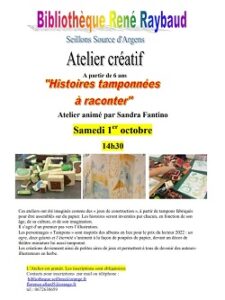 Cet atelier animé par Sandra Fantino s’intitule » Histoires tamponnées à raconter ».