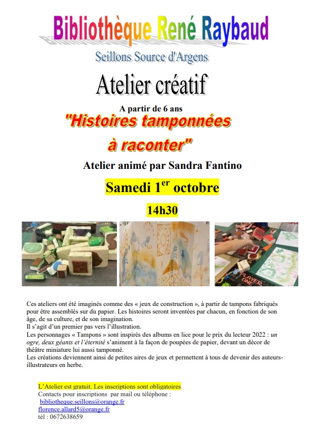 bibliotheque.seillons@orange.fr ou 06 72 63 86 59