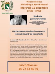 Visioconférence ayant pour thème: « l Environnement sculpte le cerveau et construit l’avenir de nos enfants » de Boris Cyrulnik