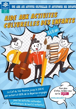 « La CAF du Var met en place, pour la 2e année, son aide financière en faveur des activités culturelles et artistiques des enfants de 6 à 11 ans. Cette aide permet de prendre en charge une partie des frais d’inscription, jusqu’à ..