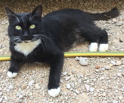 « Un chat noir, poil mi-long et plastron blanc ainsi que le bout des 4 pattes, fait escale au chemin des Tribourins depuis mi-juillet; peu farouche après quelques jours, il est sociable et affectueux mais a dû ..