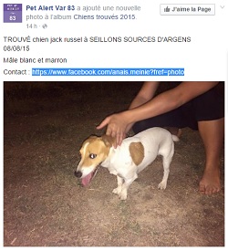 « Un jack russel a été trouvé sur Seillons source d’Argens. Il s’agit d’un mâle blanc et marron.