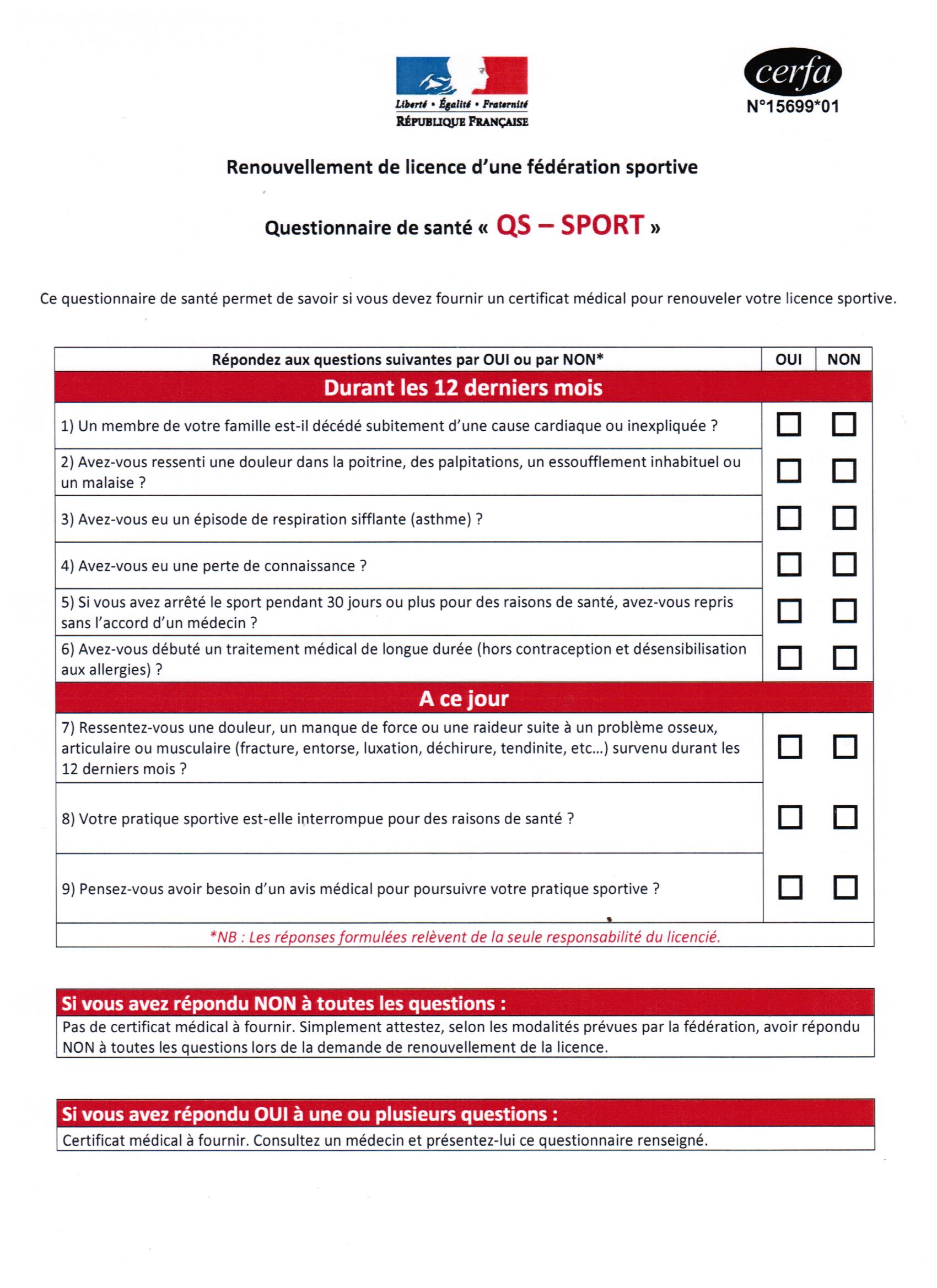 - lire, remplir et conserver le questionnaire de santé complété en lien ICI.