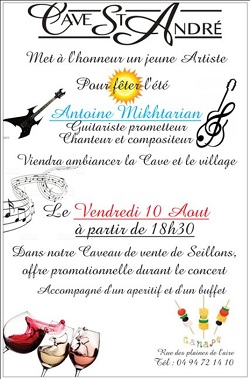 « Antoine Mikhtarian, jeune chanteur compositeur, qui viendra ambiancer le caveau de vente de notre village