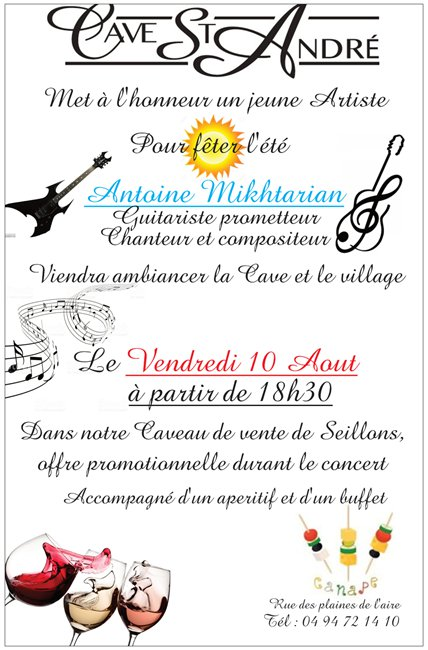 Une offre promotionnelle sur les produits du caveau sera proposée exceptionnellement en même temps que le concert. »