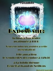 Cette année, c’est le domaine des sciences grâce à Inaya. Elle a onze ans et nous propose une conférence sur « La fusion nucléaire pratiquée à ITER ». Cette année, Seillons a bénéficié d’une « Fête de la science » qui a eu beaucoup de succès. Nous vous attendons nombreux ce vendredi 8 décembre à 17h30 à la bibliothèque de Seillons. »