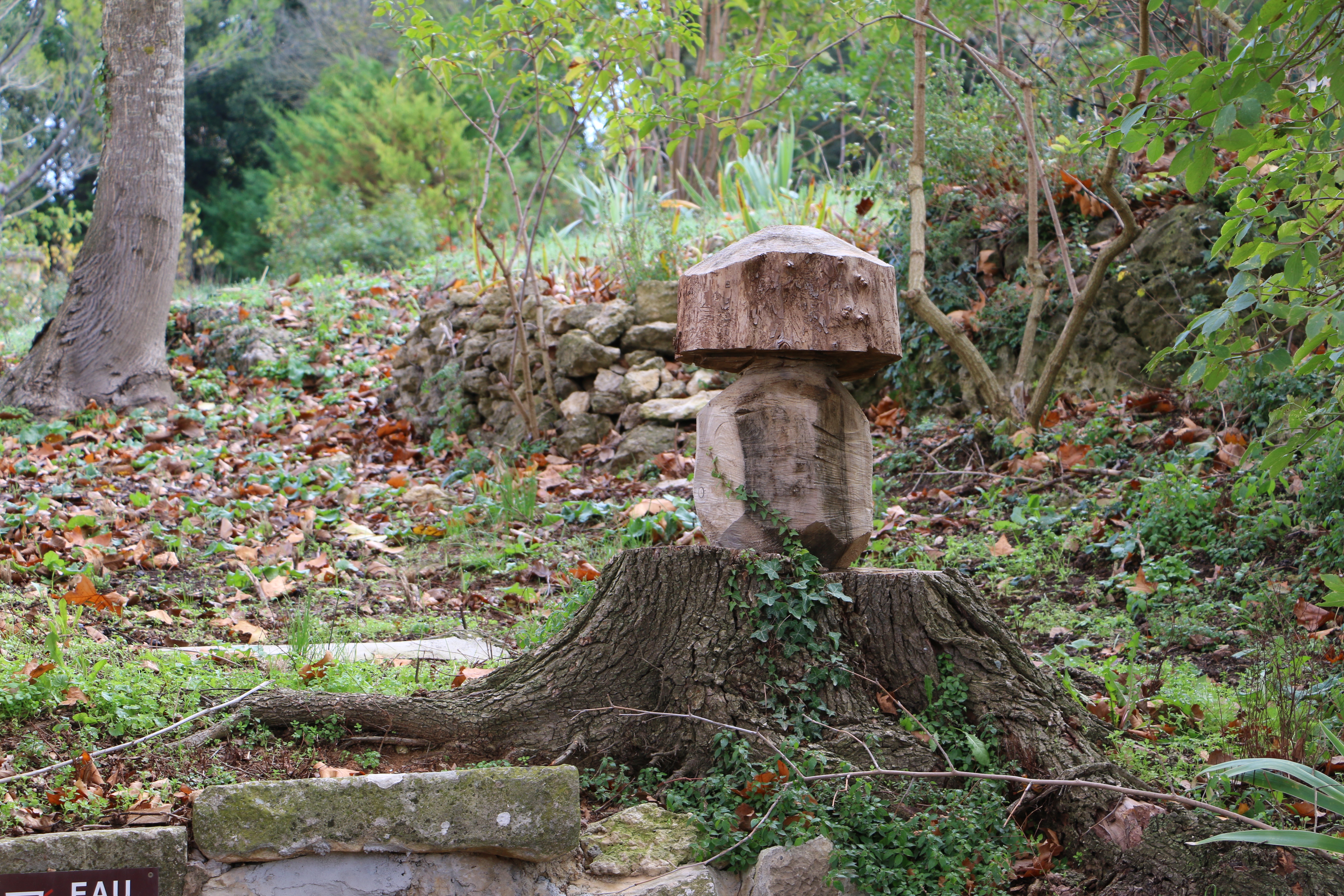 C’est la société Rémy Coiffet qui a été choisie pour effectuer cette opération. Le maire a aussi demandé à Mr Coiffet de conserver une trace de ces arbres majestueux. Et c’est ainsi que jouant de sa tronçonneuse comme le peintre de ses pinceaux, il a fait naître un champignon qui surplombe à présent le lavoir.