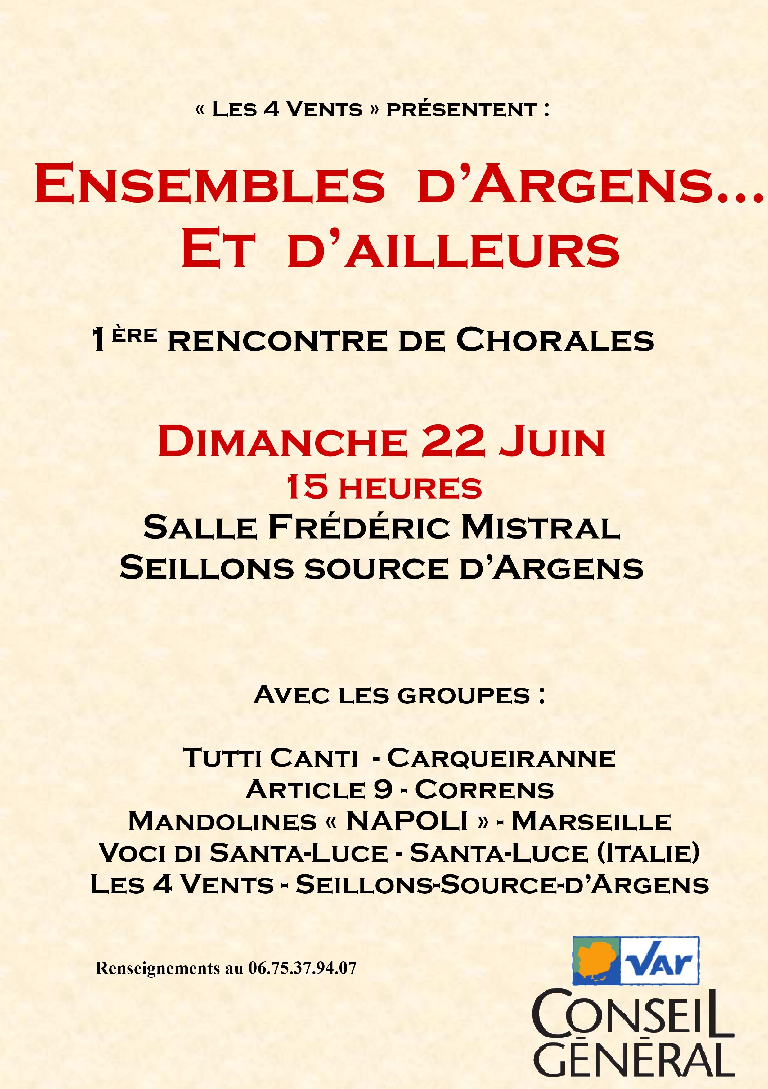 – « La chorale des 4 vents » de Seillons source d’Argens