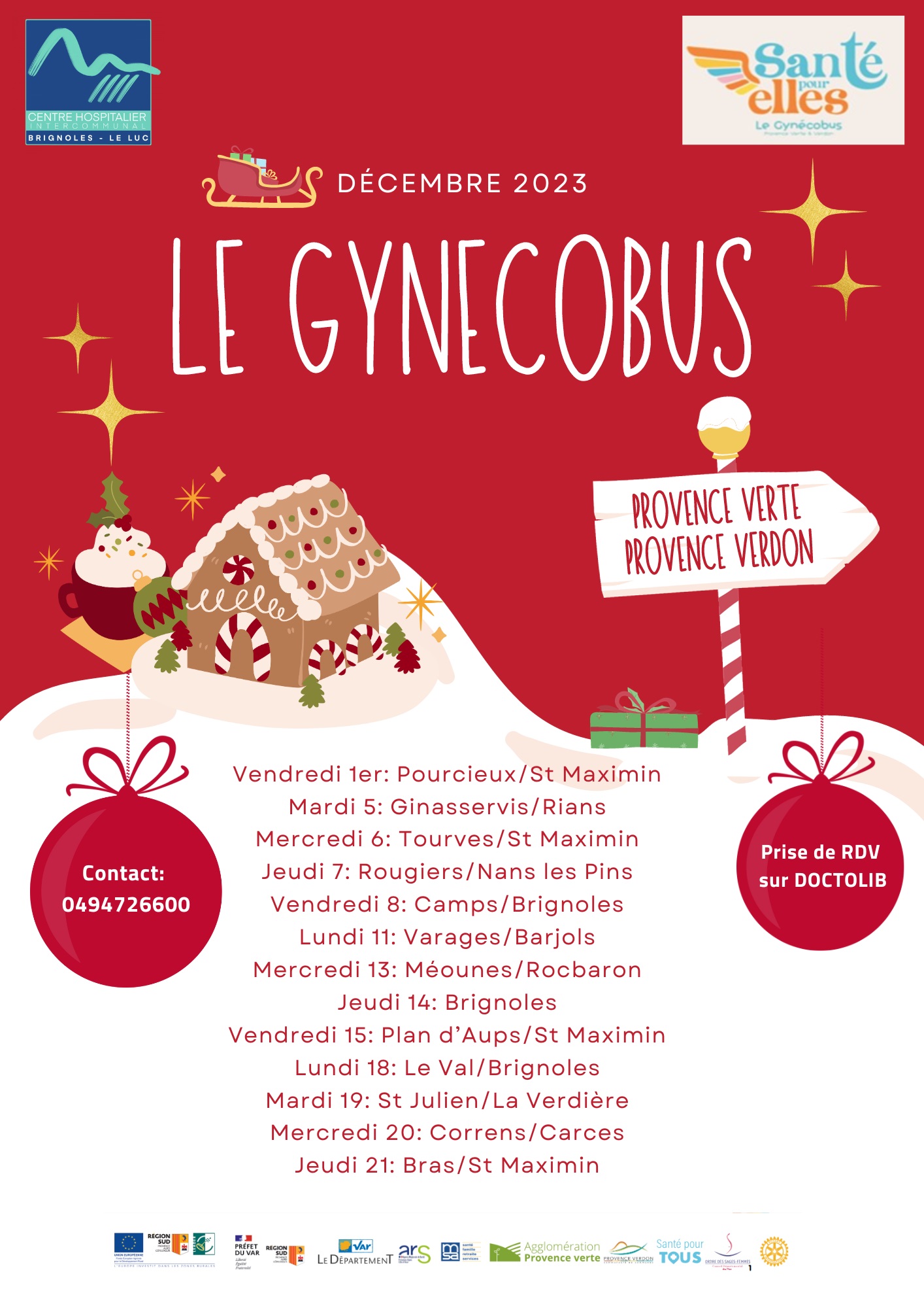 Le gynécobus du centre Hospitalier Intercommunal de Brignoles – Le Luc vous informe de sa tournée pour la fin de l’année 2023 .