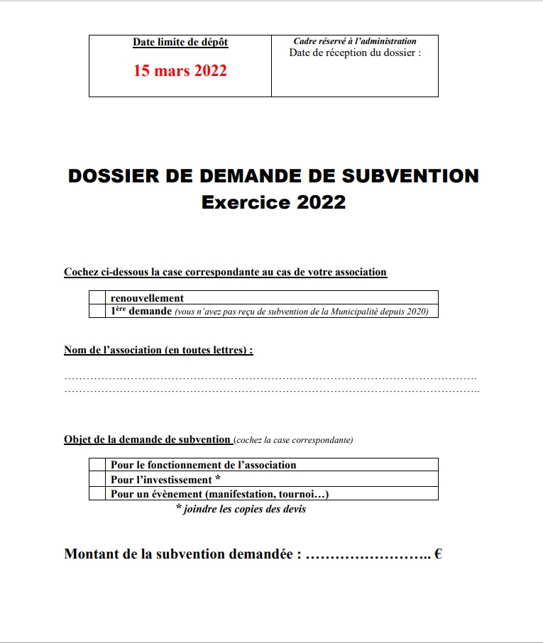 Vous avez jusqu’au 15 mars 2022 (un dossier par association) pour….