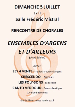 Pour la deuxième année consécutive, la chorale « des 4 vents » organise une rencontre intitulée « ensembles d’Argens et d’ailleurs ».