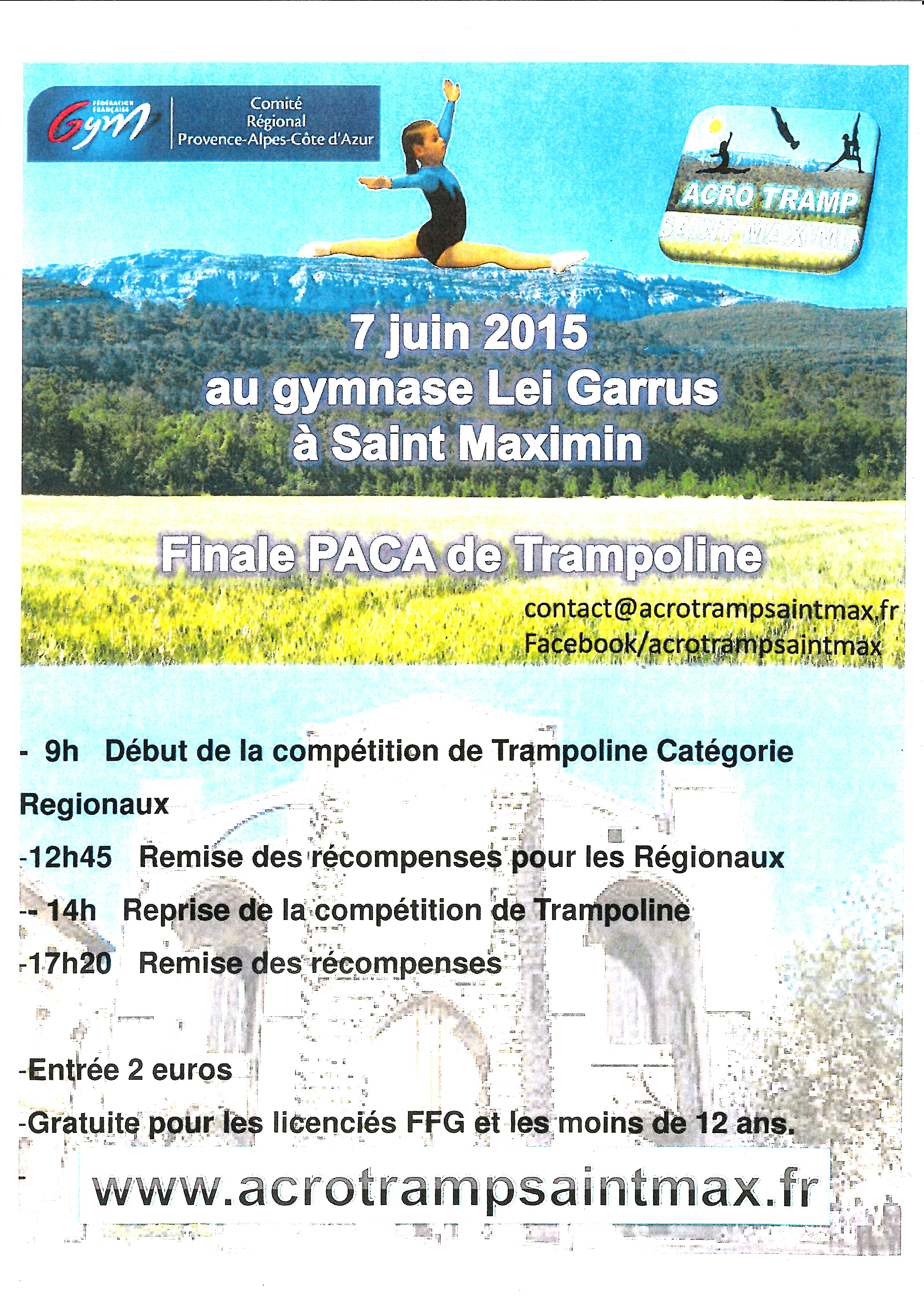 Le club Acro Tramp Saint-Maximin-Seillons (tel devrait être le nom de l’association dès l’année prochaine) vous invite ce dimanche 7 juin à la finale PACA de trampoline.