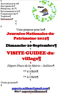 … l’association ASPECTS ( Association pour la Sauvegarde du Patrimoine, de l’Environnement, des Connaissances et Traditions Seillonnaises ) propose deux visites commentées du village: