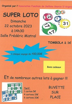 Comme chaque année, l’association familiale vous invite à son super Loto :