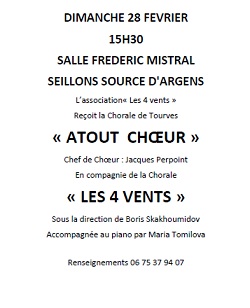 La chorale « Les 4 vents » organise une rencontre avec la chorale « ATOUT CHOEUR » de Tourves.