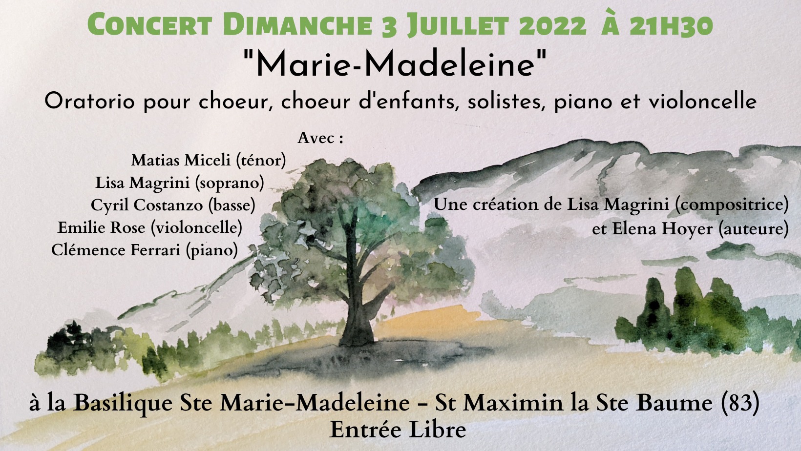 Pour un Oratorio en hommage à Marie Madeleine dirigé par Lisa Magrini.