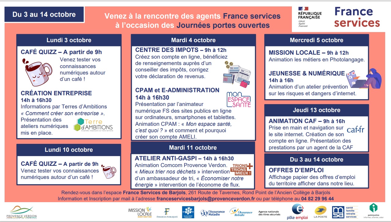 L’espace France services de Barjols nous transmet le planning des animations prévues pour cette quinzaine.