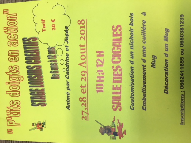 Attention les places sont limitées donc inscrivez-vous dès à présent en téléphonant au: 06 50 38 12 39 ou 06 62 41 16 55 .