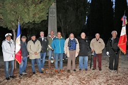 …. Roger Prats (le président du Souvenir Français de St Maximin), Thierry Dugat, Jérôme Cleyet et Patrice Toumiat (élus de notre commune) ont déposé solennellement une plante, suivi d’une minute de silence. A cette occasion était aussi présent cette année monsieur Cousin (des médaillés militaires) et monsieur Manet ( de la FNACA). Puis l’assemblée a repris en cœur et à cappella la Marseillaise.