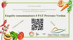 Dans ce cadre, la Communauté de Communes vous invite à répondre à ce questionnaire (lien ci-dessous) afin de prendre connaissance de vos habitudes de consommation alimentaire et de vos éventuels besoins. Les résultats permettront d’alimenter le Projet Alimentaire Territorial de Provence Verdon. Ce questionnaire ne vous prendra que quelques minutes. Nous vous remercions vivement pour votre participation.