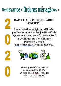 Service redevance ordures ménagères au : 04 94 77 18 53