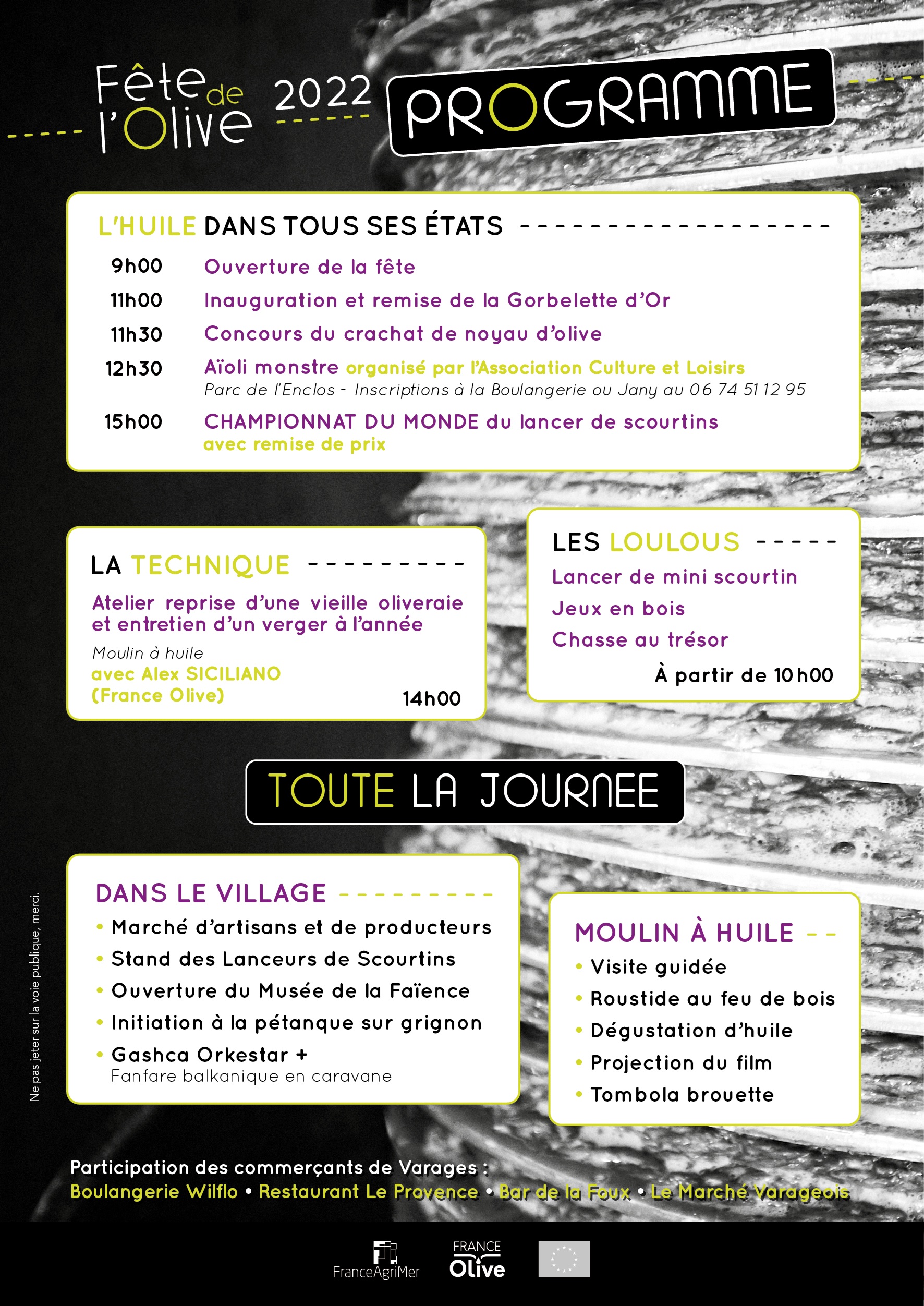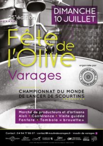 « C’est avec joie que l’association les Lanceurs de Scourtins Varageois vous accueilleront à la Fête de l’Olive » le,