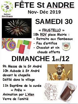 Dimanche 1er Décembre dès 09h00, le village rend hommage à son Saint patron : Saint André