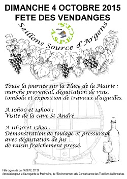 Dimanche 04 Octobre rejoignez l’association ASPECTS, pour fêter les vendanges.