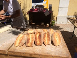 La matinée s’est terminée dans la bonne humeur autour d’un grand pique-nique tiré du panier et accompagné par un morceau de bon pain cuit au four à bois sur la place.