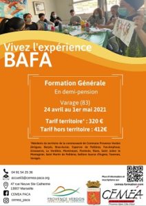 » Nous avons le plaisir de renouveler l’organisation d’une formation BAFA (Brevet d’Aptitude aux Fonctions d’Animateur) sur le territoire communautaire pour l’année 2021 en partenariat avec les CEMEA.
