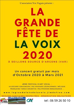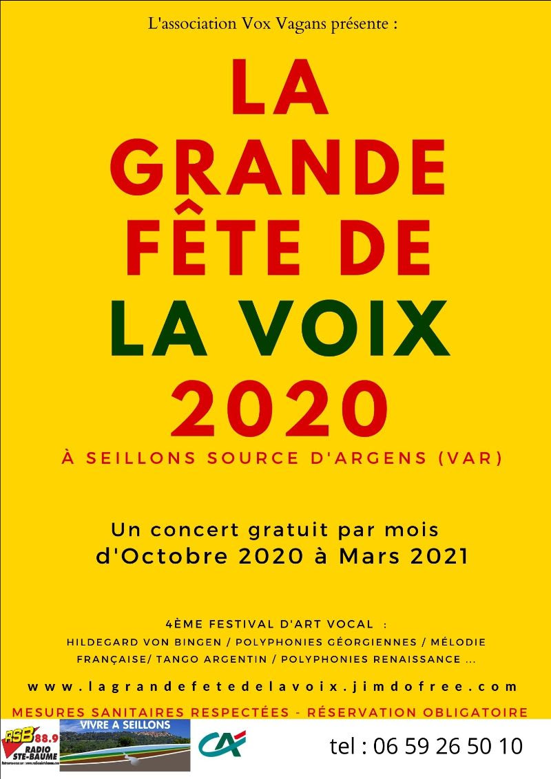 La 4e fête de la voix débute ce samedi 24 octobre 2020. Cette nouvelle édition de la grande fête de la voix qui a pour vocation de réunir autour de l’art vocal dans toute sa diversité, propose une nouvelle formule « un concert par mois ».