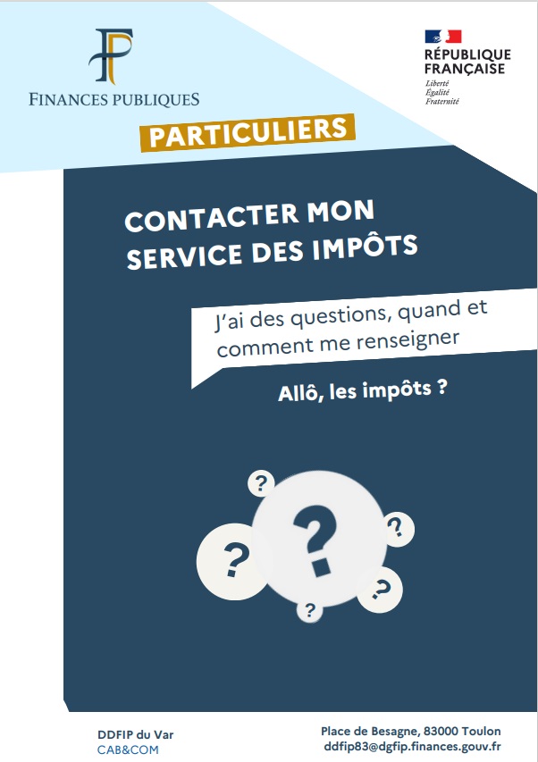 - Les services des impôts des particuliers dans les centres des Finances publiques du Var sont ouverts à l’accueil du public du lundi au vendredi toute la journée sur rendez-vous, mais aussi sans rendez-vous tous les matins à Brignoles au Parc des Augustins de 8h30 à 12h15 sauf le mercredi.
