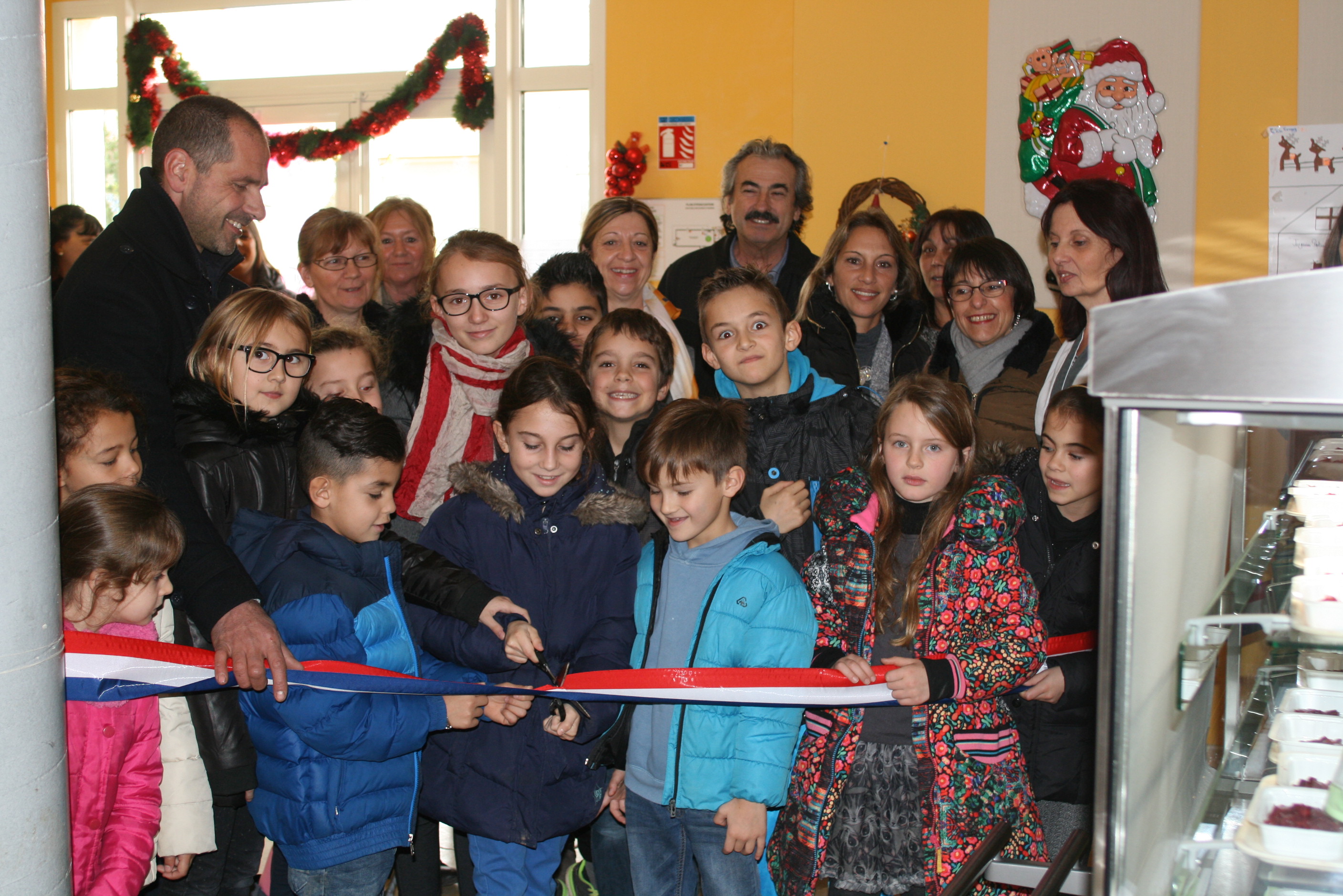Les représentants des élèves de l’école élémentaire des 4 vents, le maire, son 1er adjoint et l’adjoint en charge du projet ont inauguré le nouveau self-service de la cantine scolaire ce lundi 4 janvier.