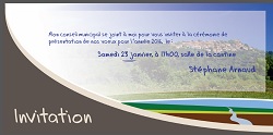 info mairie Invitation! by LeSeillonnais 18jan écrit par LeSeillonnais 18jan 16 Monsieur le maire et son conseil municipal ont le plaisir de vous inviter à la présentation des vœux le samedi 28 janvier à 17h00 salle Frédéric Mistral Et vous proposent de partager à cette occasion la traditionnelle galette des rois. 201783470année 2017conseil municipalgalettes des roisinvitationmaire Stéphane Arnaudseillonsseillons sourceseillons source d'argensStéphane Arnaudtraditionnelle galette des roisvivre a seillonsvivreaseillonsvoeux 0 commentaires 0 FacebookTwitterPinterestEmail LeSeillonnais article précédent Vague de froid : protégez votre compteur d’eau article suivant Soirée poétique You may also like Var jeunesse : Dispositif d’aide 18mar VICTOIRE ! Le transfert ne se sera plus... 17mar Flash info : Début travaux parking boulangerie et... 15mar 20 mars 2025 : conseil municipal 15mar Arrêté Départemental Temporaire n°2025T0619 14mar Une belle initiative ! 27fév PLANNING DES TRAVAUX DE VOIRIE 27fév Chemin du Jonquier : fermeture temporaire de la... 26fév INFORMATIONS TRAVAUX : Début IMMINENT 23fév Tournée du gynécobus de mars 2025 20fév Leave a Comment Cancel Reply Save my name, email, and website in this browser for the next time I comment. Δ
