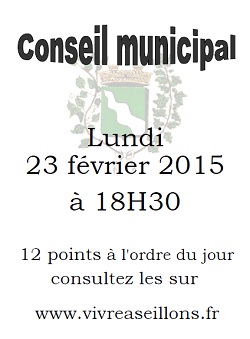 Les Seillonnais sont invités à venir assister à la réunion du conseil municipal qui aura lieu :