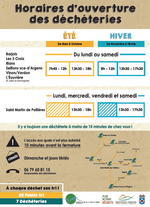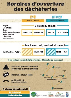 Les 7 déchèteries de notre communauté de commune passe à l’heure d’été du 1er mars au 31 octobre.