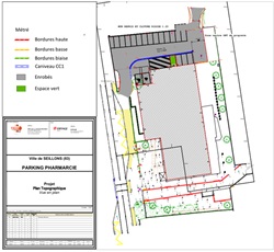 - Réfection du revêtement : L’ensemble du parking sera rénové avec un enrobé neuf et des places de stationnement clairement identifiées, facilitant l’organisation du stationnement.