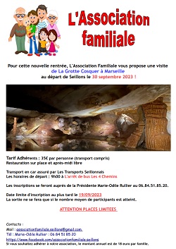 Inscription auprès de la présidente de l’association familiale Marie-Odile, soit par téléphone au  06.84.51.85.20, soit par mail : marie-odile.rullier123@orange.fr: