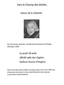 Eric Cusset, physicien retraité du commissariat à l’Energie Atomique (CEA) vous invite à une conférence débat autour de la relativité :
