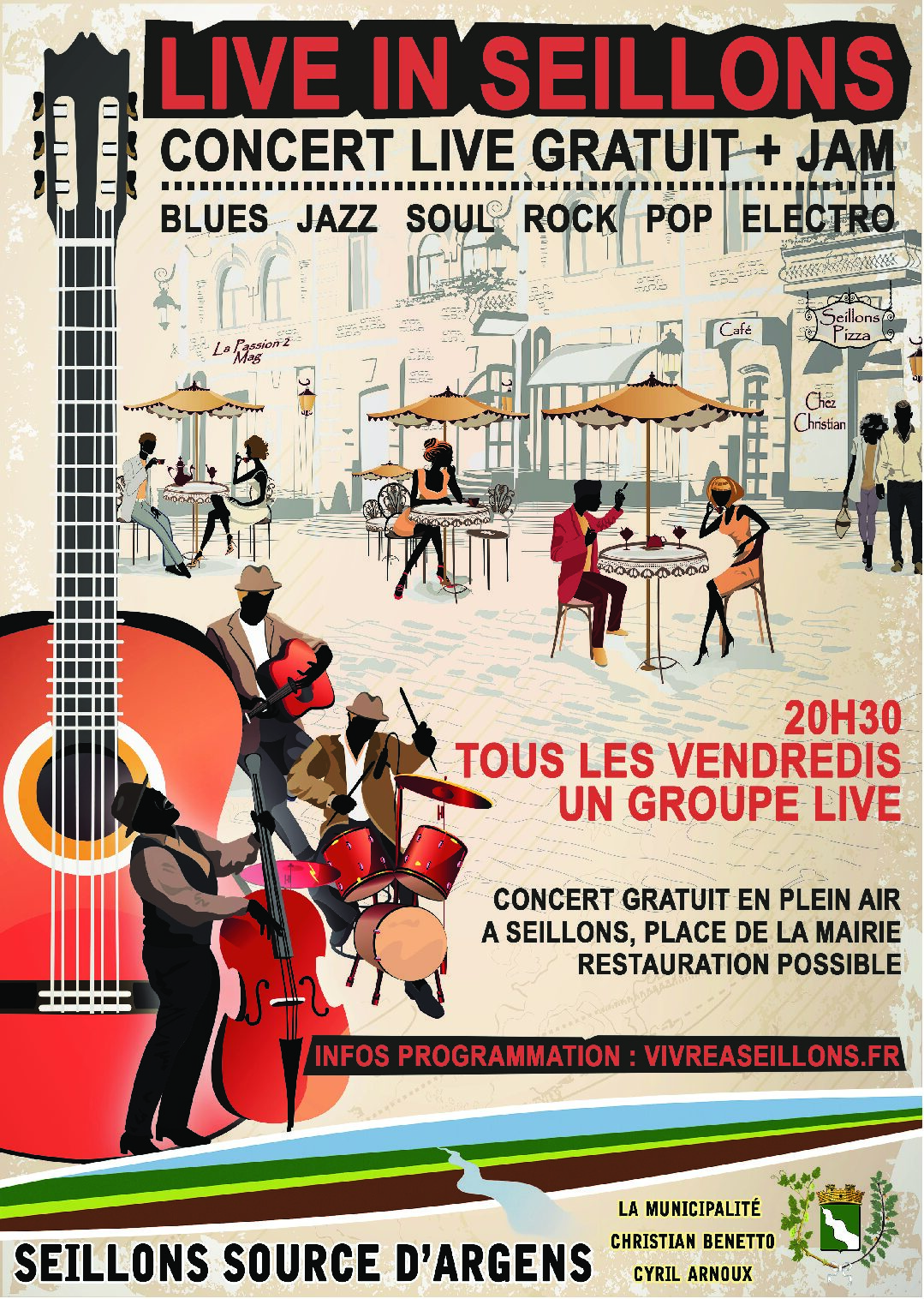 Live in Seillons c’est tous les vendredis soirs de cet été : un concert gratuit, live et en plein air sur une place agréable où il fait bon vivre !!!
