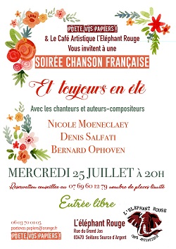 Pour une soirée intitulée « Et toujours en été » autour des chansons françaises.