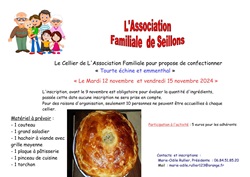 Rejoignez l’équipe de l’association familiale pour un nouvel atelier Cellier où nous préparerons ensemble une délicieuse Tourte échine et emmental ! Une recette parfaite pour un apéritif, un brunch, ou simplement pour le plaisir de savourer quelque chose de bon.