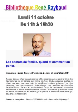 - Lundi 11 octobre de 11h à 12h30 : les secrets de famille