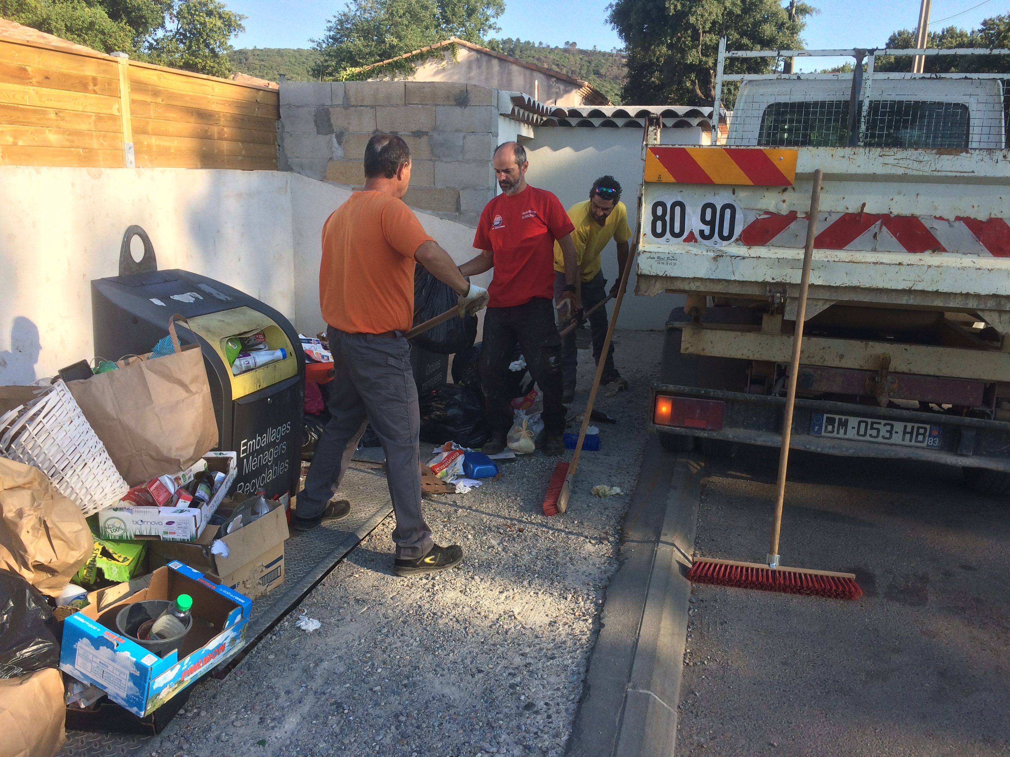 Ce lundi matin, les employés municipaux et vos élus ont donc fait le tour pour ramasser les poubelles éventrées de la commune. Deux aller-retours à la déchetterie ont permis de nettoyer un temps les lieux de collecte. Finalement en milieu de matinée un employé de la société Nicollin ( encore une société sous-traitante du syndicat Mixte) s’est déplacé jusque chez nous, pour nous rencontrer. Suite à cet échange nous avons aussi obtenu l’installation provisoire de bacs pour la collecte des ordures, jusqu’au retour à la normale …!!!